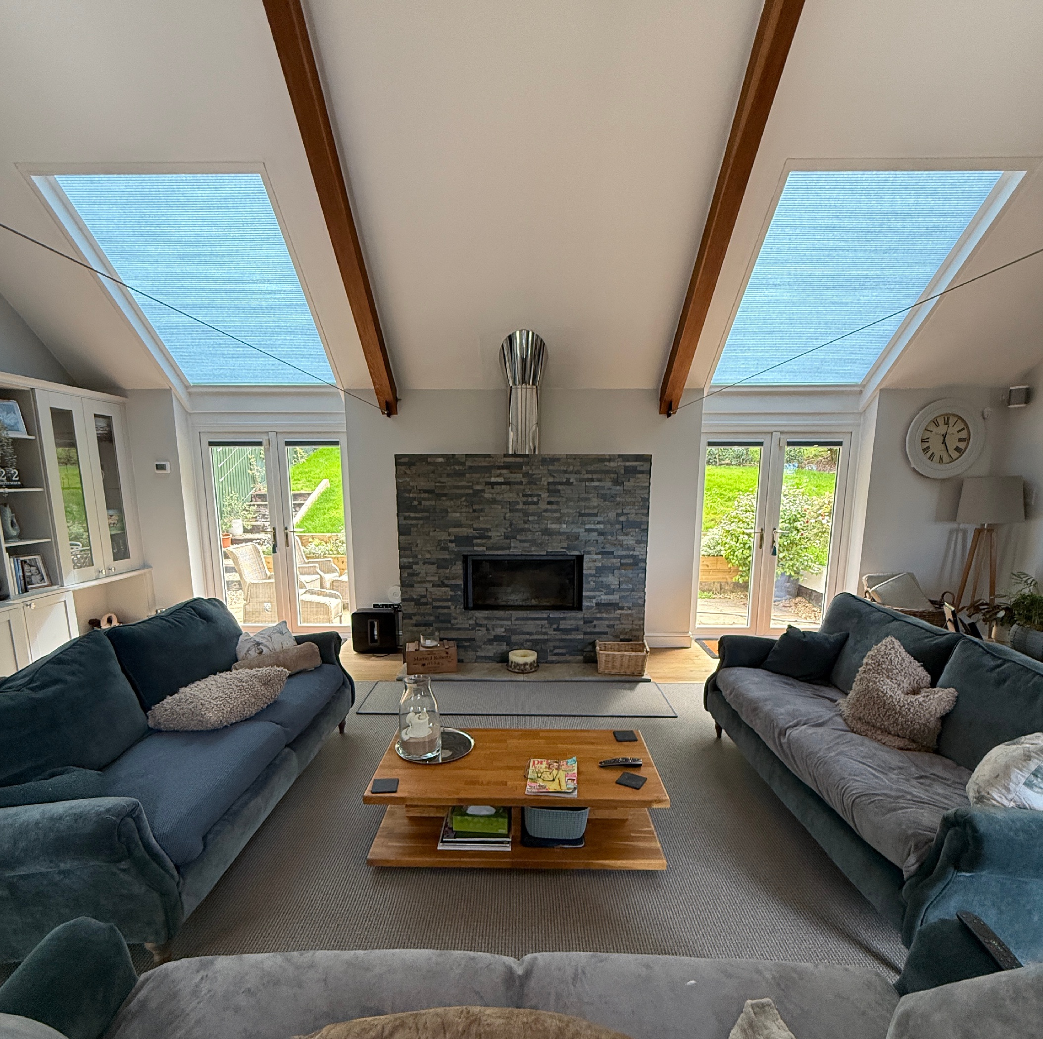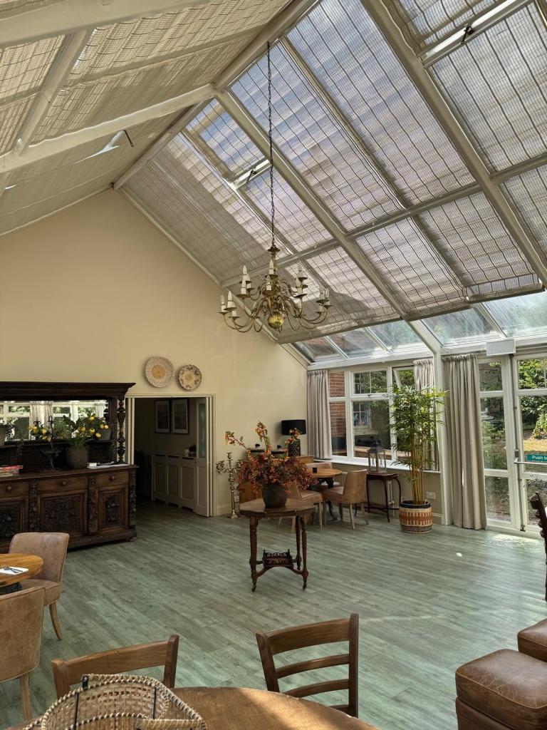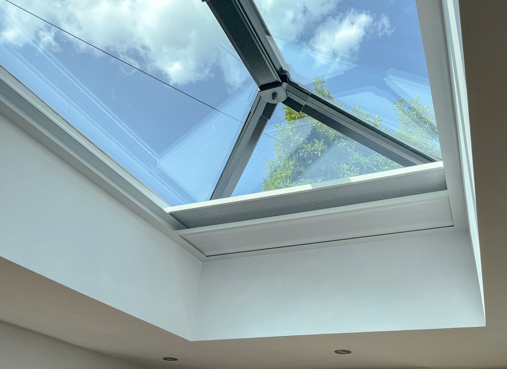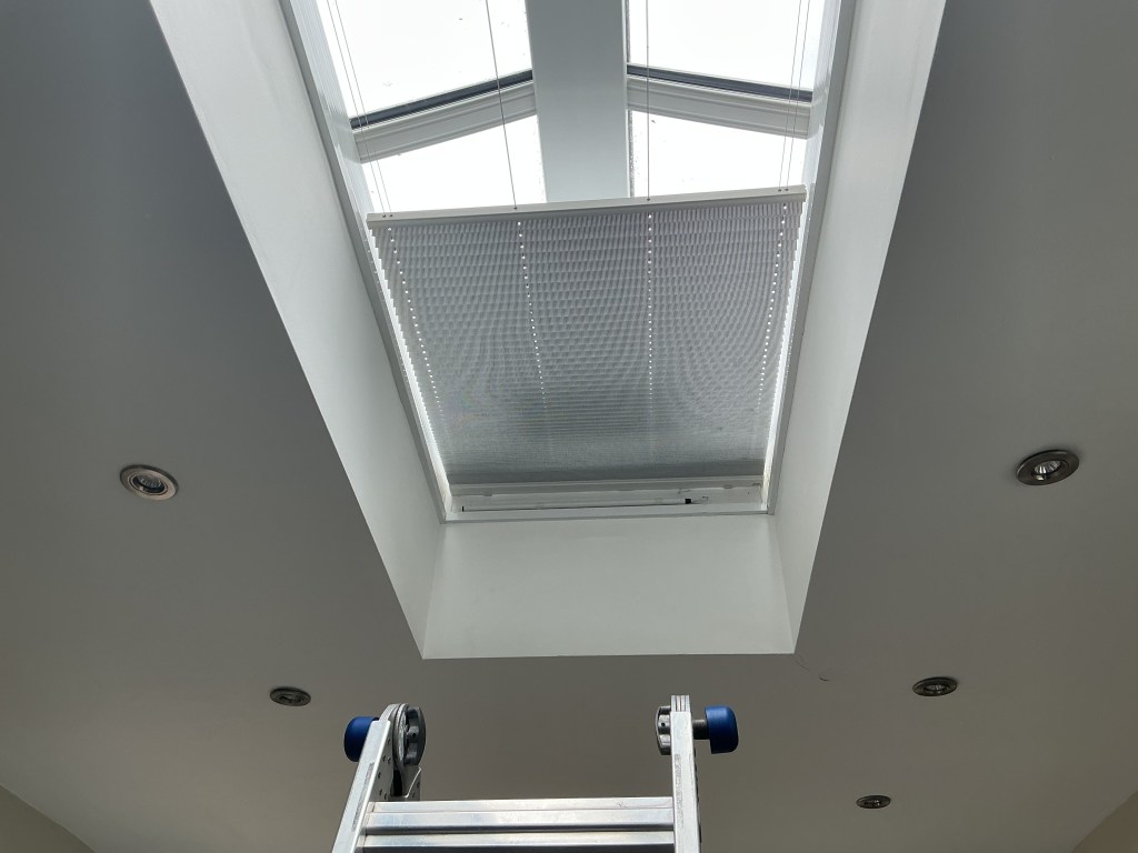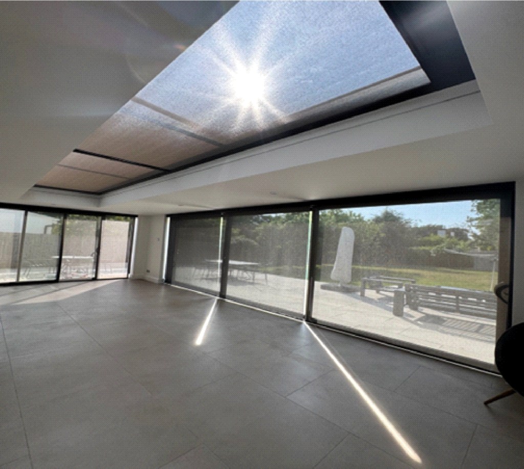 The large conservatory requires blind coverage to both the roof and windows and again the client has opted for motorised operation with our Solo Connect system.