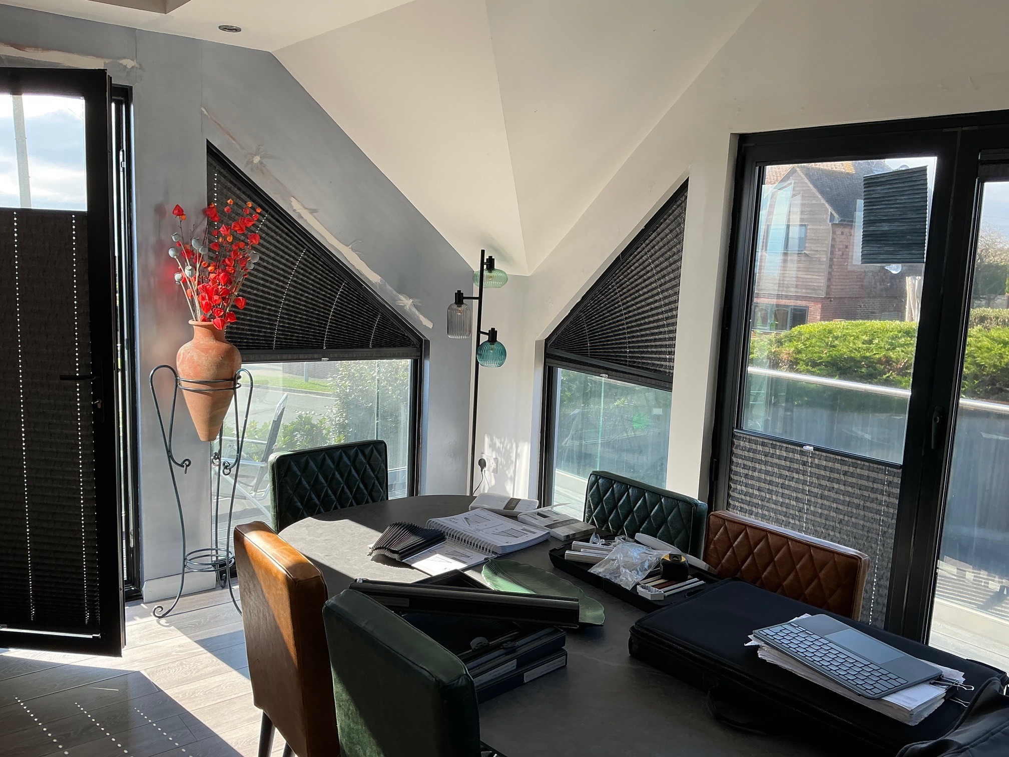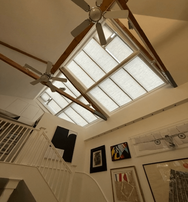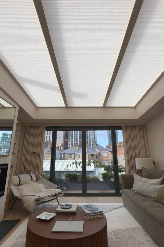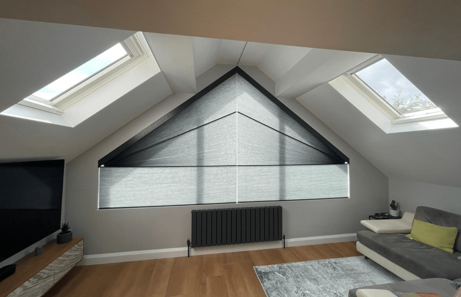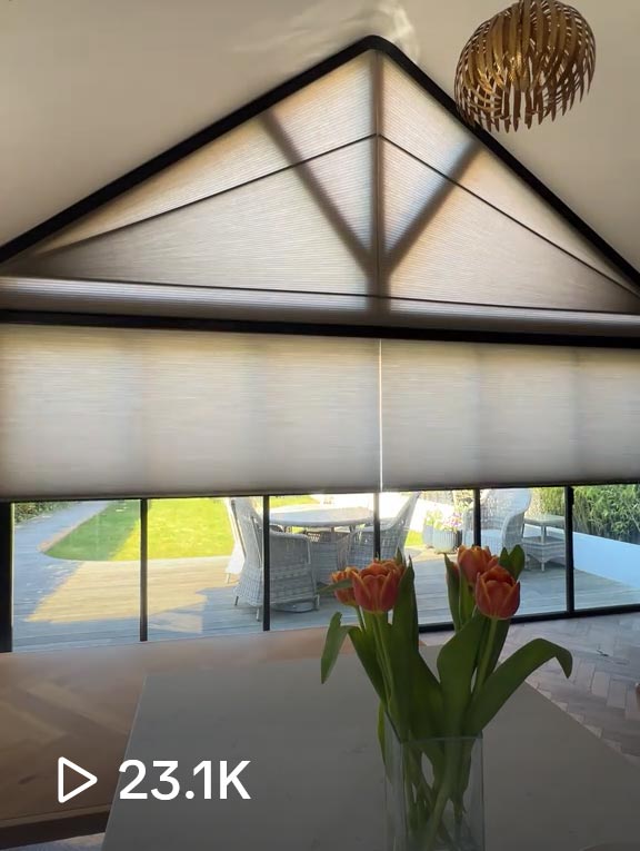 The combination of manual shaped roof blinds and motorised systems fits perfectly, proving that with the right expertise, even the most challenging designs can be conquered.