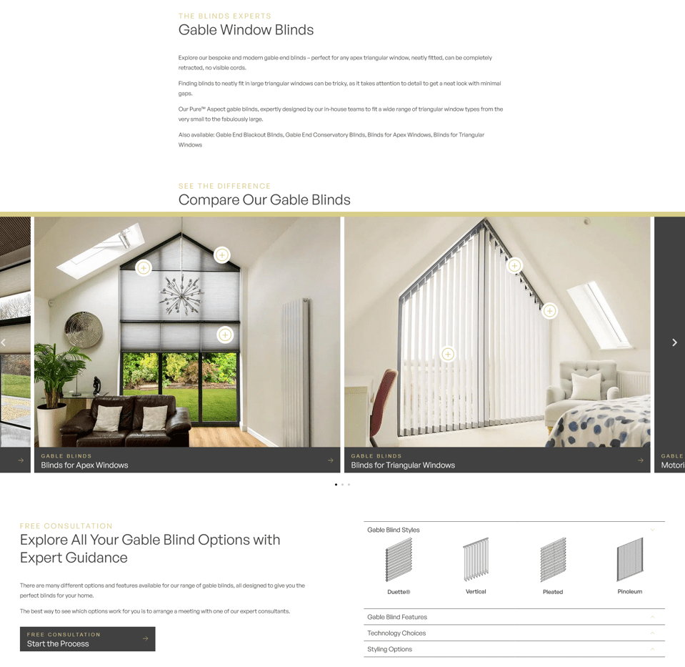 I used this company as I had an apex window that was incredibly tricky to dress due to the size and angle. I had an appointment with the sales team member who spent hours going through all the options open to me and explaining how the blinds worked, then a follow up appointment with the fitter to double check measurements before manufacture. Everything was bespoke and the skill and workmanship was outstanding. The fitter was a pleasure to deal with and knew his job inside out and had such an attention to detail. – Kate Folbigg