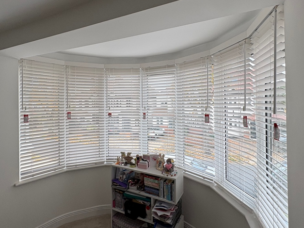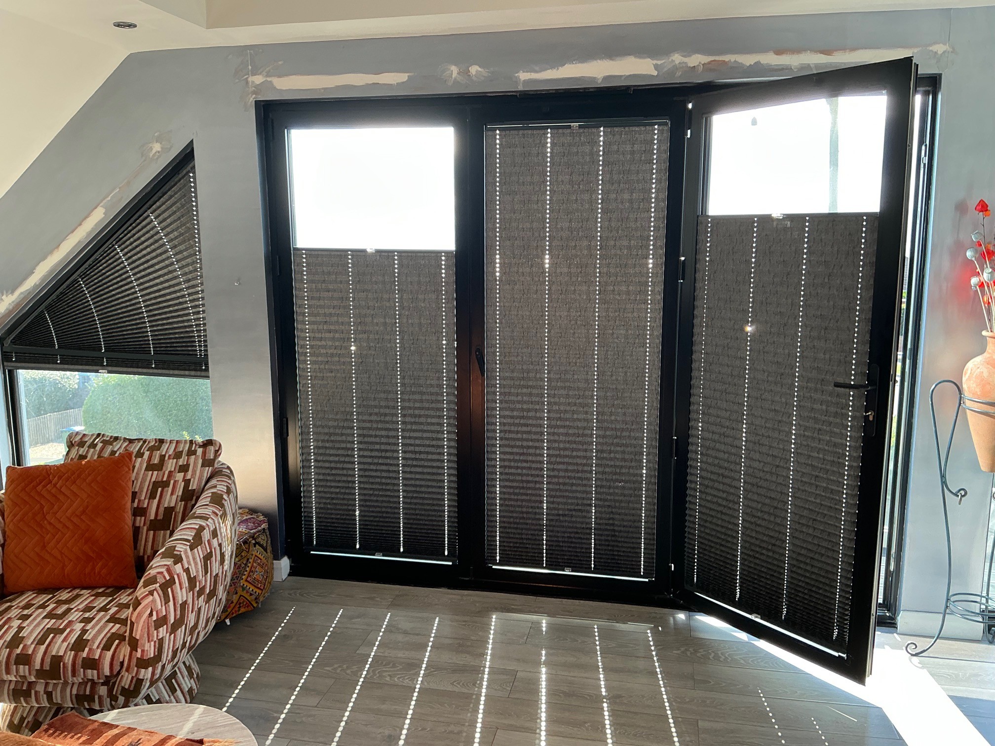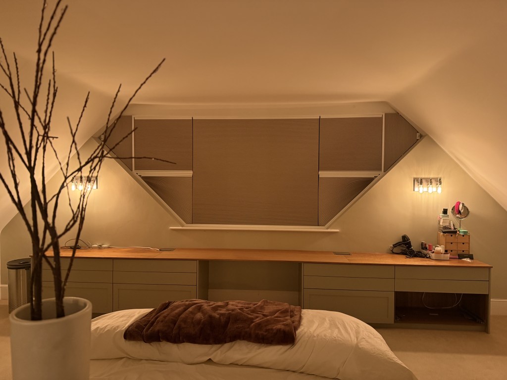 Following on from November’s complex window challenge, Greg’s concept has now become a reality. Installed by Martin Evans with his usual precision and care, the finished solution delivers exactly what the client was hoping for – effective dim-out coverage that works seamlessly with the complex window shapes, without compromising on aesthetics.